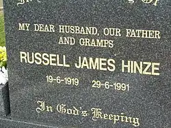 - ^ a b c Stevenson, Brian F. (2014). "Hinze, Russell James (Russ) (1919–1991)". Australian Dictionary of Biography. National Centre of Biography, Australian National University. ISBN 978-0-522-84459-7. ISSN 1833-7538. OCLC 70677943. Retrieved 6 January 2018.