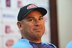 In June 2011, Domingo was appointed assistant coach of the senior national team, under the newly appointed senior coach Gary Kirsten.[5] In December 2012, he took over from Kirsten as South Africa's Twenty20 International coach, with his first series being against New Zealand.[6] At the time of his appointment, he and New Zealand coach Mike Hesson were the only national coaches not to have played professionally.[7] In May 2013, Kirsten announced that he would resign as national coach at the end of July, with Domingo subsequently being announced as his replacement.[8] He has since led South Africa to the semi-finals of the 2014 World Twenty20 and 2015 World Cup, and received a two-year contract extension in September 2014.[9] In August 2017 CSA announced the appointment of Ottis Gibson as the new head coach of the Proteas, subsequently relegating Domingo to coaching the SA A team. He was also appointed head coach of the Pretoria Mavericks for the T20 GLOBAL LEAGUE in South Africa.
