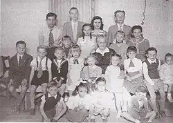 Russian Argentine children with their Russian language and dance teacher in Comodoro Rivadavia, Chubut, around 1945.