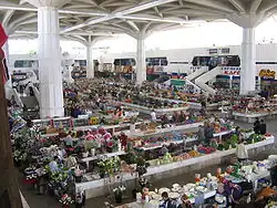 The Russian Bazaar or Gulistan (Turkmen: Gulistan söwda merkezi; Rus bazary, Гулистан сөвда меркези; Рус базары) in Ashgabat is one of the largest and oldest covered markets in the Turkmenistan. It is located in the centre of the city. The "Russian Bazaar" was built in the period of 1972—1982 by the design of the Russian architect Vladimir Visotin among other buildings that were included in the "Ashgabat Reconstruction Program of 1970-1980." The building was done in the Soviet Modernism style and decorated by the Turkmen sculptor Klych Yarmamedov who adored the building with a magnificent abstract sculpture placed in one of the building's corners. Despite the emergence of new stores and malls in Ashgabat, markets continue to be popular among locals and tourists and are regularly visited by foreign delegations. The range of goods is enormous, and the bazaar also houses shops and eateries. In 2001 it was reconstructed by the Turkish company Ekol, with updated outlets, shops and foodstalls.[1] The complex was covered with white marble. In 2007, there was a fire in the clothing section of the market.