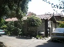 House at 370 South Mills Avenue. This house, at the corner of S. Mills ave. and Moreno St., was built in 1928 and is mostly in Montclair, California. Burton Blanchard paid Stys $400 for the lot. Stys advised Burton on the construction. The exterior is made of up concrete blocks taken from San Antonio Avenue and Holt Boulevard during repairs of those streets. The roof tiles were taken from a school in Glendora that was being demolished. The interior materials include pavement, railroad ties, and oil cans filled with cement. An addition was made to the house in the 1940s.[3] Former residents of the house include the actor Maurice Jara and the composer Daniel James Wolf
