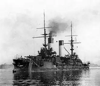 Oryol (Russian: Орёл, "Eagle"; also Orel, Orël) was a Borodino-class battleship built for the Imperial Russian Navy in the first decade of the 20th century. The ship was completed after the start of the Russo-Japanese War in February 1904 and was assigned to the Second Pacific Squadron sent to the Far East six months later to break the Japanese blockade of Port Arthur. The Japanese captured the port while the squadron was in transit and their destination was changed to Vladivostok. Oryol was badly damaged during the Battle of Tsushima in May 1905 and surrendered to the Japanese, who put her into service under the name of Iwami (Japanese: 石見).