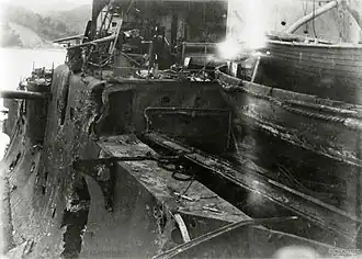 She was assigned to the 5th Division of the 3rd Fleet on 7 January 1918[21] as its flagship and landed a company of marines in Vladivostok five days later at the start of the Japanese intervention in Siberia during the Russian Civil War.[25][26] Iwami returned to Kure on 9 September and was subsequently relieved from her assignment with the 3rd Fleet. The ship was assigned to defend Kamchatka from 24 September 1920 to 30 June 1921 and was based in Vladivostok and Petropavlovsk.[21] She was reclassified as a first-class coast defense ship in September 1921 and was used as a training ship. In accordance with the terms of the Washington Naval Treaty, Japan agreed to scrap Iwami. She was disarmed in April 1922 and used as a depot ship until she was struck on 1 September.[16] Iwami moored to the west of the island of Jōgashima near the mouth of Tokyo Bay and used as a target by aircraft of the Yokosuka Naval Air Group from 5–8 July, finally sinking on 10 July 1924.[21]