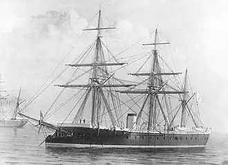 The Russian ironclad Sevastopol (Russian: Севастополь) was ordered as a 58-gun wooden frigate by the Imperial Russian Navy in the early 1860s, but was converted while under construction into a 32-gun armored frigate. She served in the Baltic Fleet and was reclassified as a training ship in 1880. Sevastopol was decommissioned five years later, but was not sold for scrap until 1897.