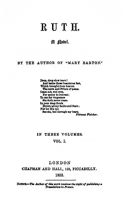 Ruth is a novel by English author Elizabeth Gaskell, first published in three volumes in 1853.