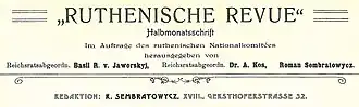 Ruthenische Revue was published by Ruthenische Nationalkomitee from 1903 to 1905.[1] It was based in Vienna.[1] It tried to make the Ukrainian issue known among the European politicians and public. Several articles in Ruthenische Revue about the oppressed Ukrainian nation were published or quoted in different European newspapers.