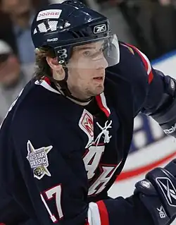 Ryan James Kesler (born August 31, 1984) is an American former professional ice hockey center. Selected in the first round, 23rd overall, by the Vancouver Canucks in the 2003 NHL Entry Draft, Kesler spent the first 10 years of his National Hockey League (NHL) career with the Canucks after which he was traded to the Anaheim Ducks in 2014 with whom he spent the rest of his career.[1] He is best known for being a two-way forward and his agitating style of play, winning the Selke Trophy in 2011 while also being a finalist for the award in 2009, 2010, 2016 and 2017.[2][3]