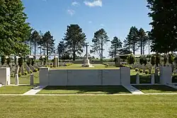 Ryes War Cemetery is a Second World War cemetery of Commonwealth soldiers located close to the commune of Bazenville, 8 km (5.0 mi) east of Bayeux, Normandy, France. The graveyard contains 653 Commonwealth war graves, one Polish and 335 German war graves. The cemetery is maintained by the Commonwealth War Graves Commission.[1]