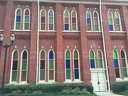 Stained glass windows on the north-facing exterior of Ryman Auditorium