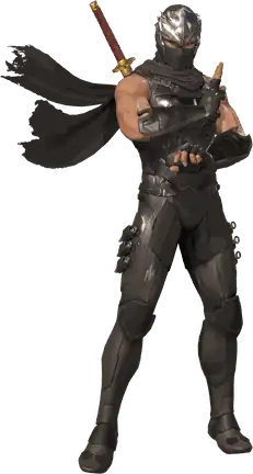 Ryu Hayabusa is equipped with a katana-like Dragon Sword, shurikens, and ninpo techniques such as fire wheels.[5] In designing the protagonist Ryu Hayabusa, the development team wanted him to be unique from other ninjas. They designed him with a ninja vest to place emphasis on his muscles, and they furnished him with a cowl that arched outward. They originally wanted to equip Ryu with sensors and a helmet with an inside monitor to check his surroundings, but that idea was scrapped. According to Kato, they used specific locations and environments to justify the need for having a ninja for a main character.[6]