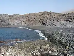 Ponta da Salina is a headland close to the village. There is a small natural harbour and a bay with basalt rock formations, one of which looks like a natural arch. There are some natural swimming pools and a dark sand beach where swimming is possible if the sea is not too rough.[2] There is a sightworthy old cemetery, which is surrounded by a wall, close to the beach.[3] Most of the graves have very simple wooden crosses without any names.