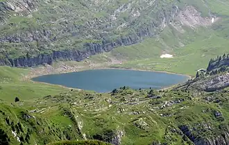 Sägistalsee is a lake in canton of Bern, Switzerland. Its surface area is 7 ha (17 acres). The lake's sediments were studied to determine past climate and human activities.