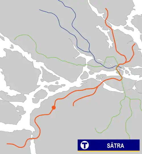 Sätra metro station is a station on the red line of Stockholm metro, located in the district of Sätra. The station was opened on 16 May 1965 as the southwest terminus of the extension from Örnsberg. On 1 March 1967, the line was extended to Skärholmen.[2] The distance to Slussen is 10.3 km (6.4 mi).