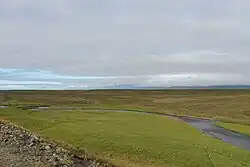 The Sæmundará river is a spring creek on the western side of Skagafjörður, Iceland. It originates in Vatnsskarð pass, in Vatnshlíðarvatn lake and Valadalur dalur,[1] curving to the north as it descends from the mountain pass, and running along the full length of Sæmundarhlíð (Sæmundur slope). At the end of Langholt, it turns east and runs along the hay field in Reynistaður, then curves northward again before finally ending in Miklavatn.[2] After the bend in the river, it is generally called the Staðará river, named after Reynistaður.[3] The Landnámabók refers to it as Sæmundarlækur.[4]