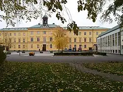 Söderportgymnasiet, an upper secondary school, was opened in 1875 in order to accommodate the increasing number of students in Kristianstad.[1] The school was built on a site previously occupied by the southern gate of the city walls, hence the current name Söderportgymnasiet.[2] In 1878 the school was named Högre allmänna läroverket, and in 1968 renamed Söderportskolan in connection with a nationwide reform.[2] In 2002 the school received its current name to better illustrate the level of education conducted there (Swedish gymnasium = upper secondary school).