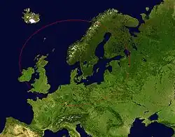The antenna currents are phase offset to achieve the directionality that has been decided by international law. One of the antennas is fed with 450 kW and the other one only with 150 kW. The station achieves most of its aiming towards west and north. It must be lowered towards east and south to not interfere with other stations on the same frequency. The station shares the frequency with five other stations in Europe. The transmission coverage area is directional the 70° and 270° azimuths.