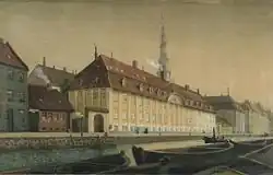 The name Kvæsthus was introduced with the inauguration of a new building for the institution at present day Sankt Annæ Plads in 1685. It was designed by Hans van Steenwinckel the Youngest. The institution was later split into a Søkvæsthus for the Navy which remained in the old building and a Landkvæsthus for the Army, which took over Københavns Ladegård, a former farm under Copenhagen Castle.[2]