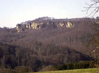 - Hohenstein (340.5 m); including the Grünem Altar, Teufelskanzel, Hirschsprung and nearby Kreuzstein; between Langenfeld and Zersen