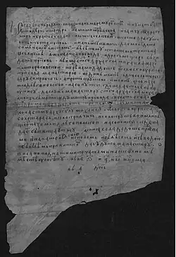 In 1391, the grandsons of Dragoș of Moldavia donated lands and goods to the Peri Monastery, and a stone church was built. For more than 300 years, this stone church was used as the headquarters of the Romanian Diocese of Maramureș, being later built by the craftsman Ioan Macarie a place to serve as a place of prayer for the Greek-Catholic community in the surroundings.[2] During the time of the Dragoșești voivodes, the monastery was patronized by Saint Michael the Archangel.[3] At the Peri Monastery, "The Psalter", "The Gospel", "The Sunday Legend", "The Voroțean Codex" and "The Acts of the Apostles" were translated and copied into Romanian for the first time. In 1404, a number of Romanian nobles reinforced the possession of the Monastery, mentioning the previous donation of Balc and Drag: three villages (Taras, Criva and Peri) and a mill "in the land of Câmpulung on the Săpânța river, where Săpânța flows into the Tisza, and after their death, Dumitru voivode and his brother Alexandru."[4]