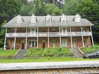 S. B. Brodbeck Housing, also known as The Brick House, is a set of four historic rowhouses located at Codorus Township, Pennsylvania, York County, Pennsylvania. It was built in 1890–1891, and is a three-story, plus attic, brick building. It has a mansard roof with a fish-scale slate pattern in the Second Empire-style. The row measures 73 feet wide and 29 feet deep. It features a full-length two-story front porch and balcony, with an intricate railing and post bracket pattern. It was built by locally prominent Samuel B. Brodbeck.[2]