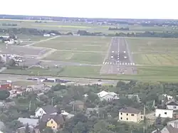S. Darius and S. Girėnas Airport (S. Dariaus ir S. Girėno aerodromas) (ICAO: EYKS), also known as Aleksotas Airport (Aleksoto aerodromas), is a small airport located in Aleksotas district of Kaunas, Lithuania, about 3 kilometres south-west from city centre. On May 6, 1993, the airport was named after the Lithuanian pilots Steponas Darius and Stasys Girėnas, who perished in a crash near the end of an attempted non-stop flight from New York to Lithuania in 1933.