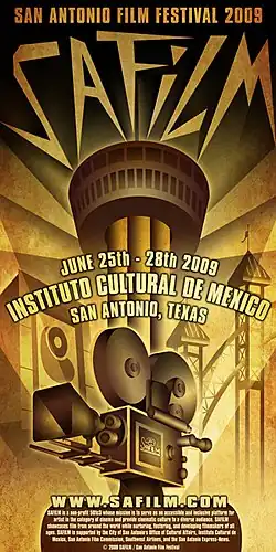 Since its inception, SAFILM has also showcased local visual artists. Artists Mig Kokinda, James Cobb, Robert Tatum and Rigoberto Luna are among those who have designed festival posters. The 2009 SAFILM poster created by Rigoberto Luna was selected as a finalist for the 39th annual Hollywood Reporter Key Art Awards for Theatrical Print - Festival Posters.[3]