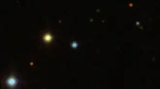 SBS 1425+606 also known as HS 1425+6039 and QSO B1425+606, is a quasar located in the constellation Ursa Major. Its redshift is 3.197157, putting the object at a light travel time distance of 11.4 billion light years.[1]