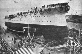 5. ^ This is an early version of the final design, and thus has several significant differences between it and the ship as completed. These include taller funnels and removal of the bow sponsons for the 8.8 cm guns and anchors. In addition, the foremast is depicted with two fighting tops, when it only had one such position.[22]