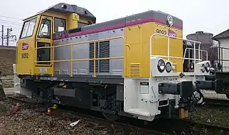 The SNCF Class Y 9000 is the new designation for modernized and re-engined Y7100 and Y7400 shunters. The refurbishment was undertaken by a consortium consisting of SNCF, Socofer and Voith Turbo. Socofer refurbished 22 full locomotives at its Tours plant, and delivered 88 kits to SNCF's Sotteville-Quatre-Mares workshops.[4][5] The first rebuilt locomotive was presented at InnoTrans 2010.[6]
