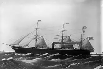 SS Bremen[1] was a German steam passenger liner, built in Greenock, Scotland by the Caird & Company shipyard. She was Norddeutscher Lloyd's first passenger ship and the first to bear the name Bremen,[2][3] the ship operated under the German flag from 1858 until her sale in 1874 and operated under the British flag until 1882, before sinking in the Farallon Islands, off the coast of California due to heavy fog.