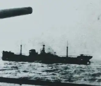 Two cargo ships saw the attack: the British Monkwood and a Norwegian ship, but they did not attempt a rescue, fearing the reaction of Nadir, which was still in international waters.[15] Monkwood later sent a report to the naval authorities, who sent naval units to the position to ensure that no hostile action would be taken inside British territorial waters.[16] Another British merchant ship, Pattersonian, approached in response to Cantabria's SOS.[17] Captain Blackmore of Pattersonian had seen Nadir head towards the lifeboat, and steered his ship across the attacker's course, preventing Nadir from reaching the lifeboat. Pattersonian rescued eleven crew from Cantabria's lifeboats. Nadir captured 20 crew in the second lifeboat. This House of Lords judged this to be unlawful interference in British shipping, as Nadir obstructed the legal duty of rescuing seamen.[18]