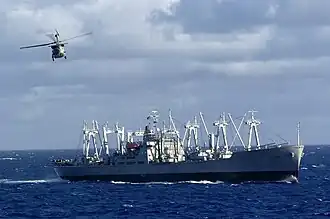 During Desert Storm, she was assigned to Rear Admiral Stephen Clarey's Amphibious Group 3,[5] carrying supplies in support of the 5th Marine Expeditionary Brigade.[6] She returned home to Suisun Bay on 19 November 1991.