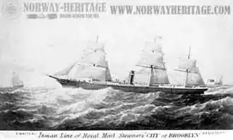 SS City of Brooklyn was a steam ship built in Glasgow in 1868 by Tod & McGregor. She was initially owned and operated by the Inman Line. She was of 2,911 GRT and was 370 ft (110 m) long and with a beam of 42 ft (13 m). She was used on sailings between Liverpool and New York. She was wrecked on 8 November 1885 on Anticosti Island. There were no deaths.