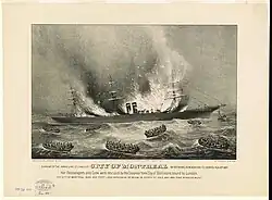On August 10th, 1887 the ship, heading back to Liverpool from New York, at around 9:20 PM caught fire and started to burn. The ship was loaded with 8,000 bales of American cotton, which is probably what started the fire, possibly when an oil lamp fell and broke onto the cotton. As the ship burned, the crew began hastily lowering lifeboats, however it was stormy when she did begin to burn, so the lifeboats all got ither separated when lowered or smashed to pieces when landing in the choppy water. 1 lifeboat that got separated, along with its 13 passengers, disappeared. The lifeboat was found later on. At around 2:00 PM the next morning the foremost mast was seen going under. The ship most likely sank round that morning. All crew and passengers were rescued by the steamship "SS York City". [5]
