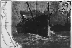 In the wake of the disaster, hull inspector John K. Bulger, who had inspected the hull of Columbia eight months earlier with hull inspector O.F. Bolles (coincidentally the first captain of the Columbia), testified that the ship was up to modern safety standards as Columbia carried four watertight bulkheads where law requires three watertight bulkheads in a ship of her size. Despite this, Bulger also testified should one of Columbia's compartments be punctured by a collision, the water would cascade over the ship's bulkheads, allowing the ship to sink. A similar flooding action would occur nearly five years later, during the sinking of the RMS Titanic in 1912.[42] Bulger later re-testified, claiming two flooded compartments onboard Columbia would lead to disaster rather than one compartment being flooded. Despite Bulger's reports, it is likely the bulkheads installed aboard Columbia did little to delay the inrush of water.[43] In addition, an issue of the San Francisco Examiner explained: