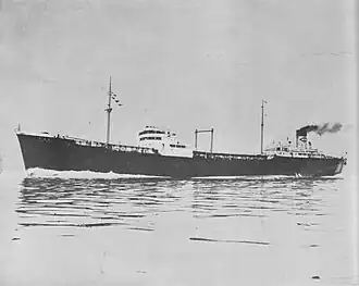 The charter to the Imperial Japanese Navy was terminated on 1 May and Kuroshio Maru was returned to her owners. She was chartered afresh on 23 May by the Imperial Japanese Army and refitted by Harima Zosensho KK.[2] She sailed between Japan, China, Formosa, French Indochina, Malaya, the Philippines and Singapore over the next few years carrying oil, troops and military cargo.[4] On 10 September 1942 she collided with the coaster Zuiun Maru, which sank.[2] Kuroshio Maru was bombed and sunk on 9 January 1945 at Takao, Formosa by aircraft of Task Force 38, United States Navy.[5] The ship was removed from the Imperial Japanese Army list on 1 March.[4]