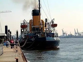 | Propulsion | Triple expansion compound steam engine with Stephenson valve gear powered by 2 hard coal boilers consuming 600 - 1000 kg/h, capacity 5800 kg/h steam each at 14,5 bar and 196 °C |