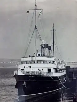 Victoria was the only Company ship to be struck by a mine in the Irish Sea. This occurred on 27 December 1940, when she was homeward bound with passengers from Liverpool, under the command of Captain John Keig. She was holed by a magnetic mine when northwest of the Bar Lightship.