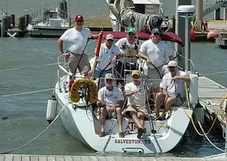 ![]() A photo of the crew of the S.V. Cynthia Woods before their 2008 departure for the Regata de Amigos in Mexico. | |