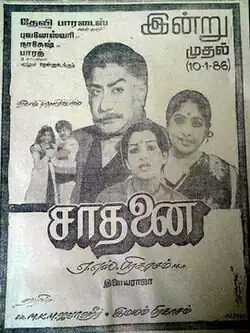 Saadhanai (transl. Achievement) is a 1986 Indian Tamil-language drama film directed by A. S. Prakasam. The film stars Sivaji Ganesan, his son Prabhu, K. R. Vijaya and Nalini. It was released on 10 January 1986.[1]