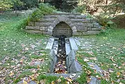 In 1910, the residents of Siegmundsburg capped the spring source of the Saar and declared it the "true" source of the Werra, in a dispute with the village of Fehrenbach that had continued at least since 1648. They argued that it was located at a higher elevation than the source near Fehrenbach at Sommerberg, which its own residents had capped and named the true source in 1897.[3][4] The feud escalated in 1926 when the Saar spring was destroyed by members of the opposing group. A 1975 political decision officially decreed the Fehrenbach spring to be the source, but the dispute was revisited after German reunification in 1992, when the Saar spring was once more capped with an inscription marking it as the Werra's source.[3]