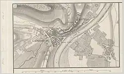 Saarburg (German pronunciation: [ˈzaːɐ̯bʊʁk], [ˈzaːɐ̯bʊʁç]) is a city of the Trier-Saarburg district, in the state of Rhineland-Palatinate, Germany, on the banks of the river Saar in the hilly country a few kilometers upstream from the Saar's junction with the Moselle. Now known as a tourist attraction, the river Leuk flows into the town centre and makes a spectacular drop of some 60 feet before joining the larger Saar that bisects the town. The waterfall is the result of a 13th-century project to redirect the Leuk through the city centre.