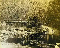 In 1867, Thomas Bain, road-maker, had surveyed the main road heading east to Knysna and passing through Pampoenkraal. In those days a toll gate was sited near the present entrance to Saasveld.