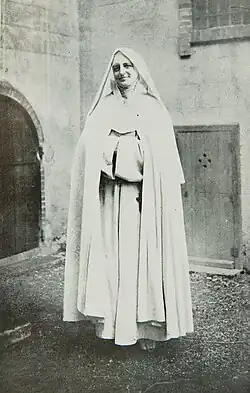 In 1926, she was commissioned to create works for the Poor Clares Convent at Mazamet.[5] On 20 September, she entered the convent as a postulant, taking the name of Sister Marie de la Grâce on 7 May 1927.[6] She later founded a workshop for making chasubles at the Ateliers d'Art Sacré created by her father in 1919 gether with Maurice Denis, a French painter and decorative artist.[1][3]