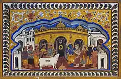 Guru Nanak, the founder of Sikhism, described a hierarchy of five spiritual levels in the Japji Sahib.[1] The highest level in this hierarchy is known as the Sach Khand where the individual attains a mystical union with God.[1] Before reaching the level of Sach Khand, the individual must ascend progressively through four lower levels—starting from Dharam Khand, and progressing through Gian Khand, Saram Khand, and Karam Khand.[1]