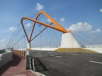The Sacobia Bridge is a road bridge in Mabalacat City, Pampanga. The structure crosses over the Sacobia River.[1] It is part of the New Clark City (NCC)-Clark International Airport access road which connects New Clark City with the Clark Freeport Zone.[2][3] It is a six-lane 894 m (2,933 ft) steel bridge.[4][5] The bridge was designed by Royal Pineda.[6]