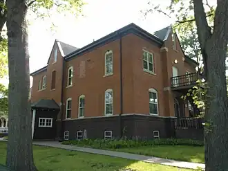 The parish school was established in 1859 in a frame building that was first used as the parish rectory.[3] This building was enlarged for more classroom space and for living quarters for the Sisters of Charity of the Blessed Virgin Mary who began teaching in the school in 1861. In the school's early years there was usually a layman who taught the older boys in addition to the Sisters. Among them was M.V. Gannon who would go on to become an attorney of some merit.[35] A new brick school building was built between 1870 and 1871.