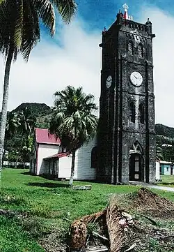 The church was built in 1858 by the Marist Fathers as a part of the Presbytery of the Sacred Heart Mission, in Levuka, which was the first historical capital of Fiji during British colonial rule. Fr. Jean-Baptiste Bréhéret served as the first priest of the church; the clock tower which is independent of the church was constructed to commemorate his joining the church.[4][10][11][5] It is said to be the "oldest and best developed catholic mission in Fiji".[4] The church was expanded in ensuing years.[4][11][5] The church is part of the heritage status accorded to Levuka by its inscription as a UNESCO World Heritage Site in 2013 under Criteria (cultural) (ii) and (iv).[10][11]