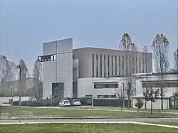 The site nearby at via Guittone d’Arezzo was initially occupied by a large Jesuit house. This building was inaugurated in 1958, and was occupied by the order until 1976. The chapel of the complex was used by the community as a parish church. Proving too small for the community, in 2010–2013, a new church and pastoral center was erected, designed by the architect Davide Raffin with Giulia Iseppi Perosa.[1]