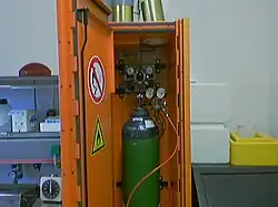 A safety cabinet is used for the safe storage of flammable chemical substance or compressed gas cylinders.[1]